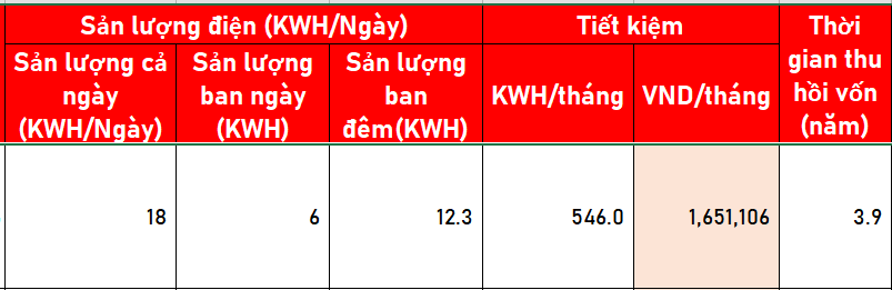 COMBO 5.6.4: (Số lượng điện: 546 kwh ~ Tiền điện: 1,651,106 đồng)/ 1 tháng | 01 pin lưu trữ 5.12 Kwh