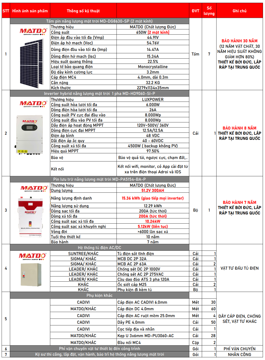 COMBO 5.6.27: (Số lượng điện: 936 kwh ~ Tiền điện: 3,061,872 đồng)/ 1 tháng | 01 pin lưu trữ 20.48 Kwh