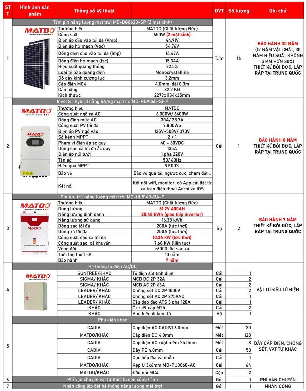 COMBO 5.6.24: (Số lượng điện: 624 kwh ~ Tiền điện: 1,933,260 đồng)/ 1 tháng | 01 pin lưu trữ 20.48 Kwh