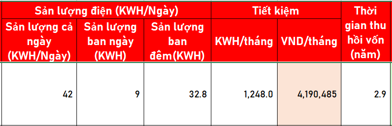 COMBO 5.6.9: (Số lượng điện: 1.092 kwh ~ Tiền điện: 3,626,178 đồng)/ 1 tháng | 01 pin lưu trữ 5.12 Kwh
